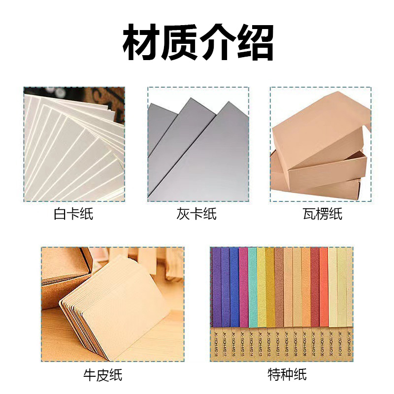 印刷紙張:銅版紙、雙膠紙、啞粉紙、珠光紙、其他藝術(shù)紙(藝術(shù)紙種類較多我們可以免費(fèi)提供紙樣供您選擇)