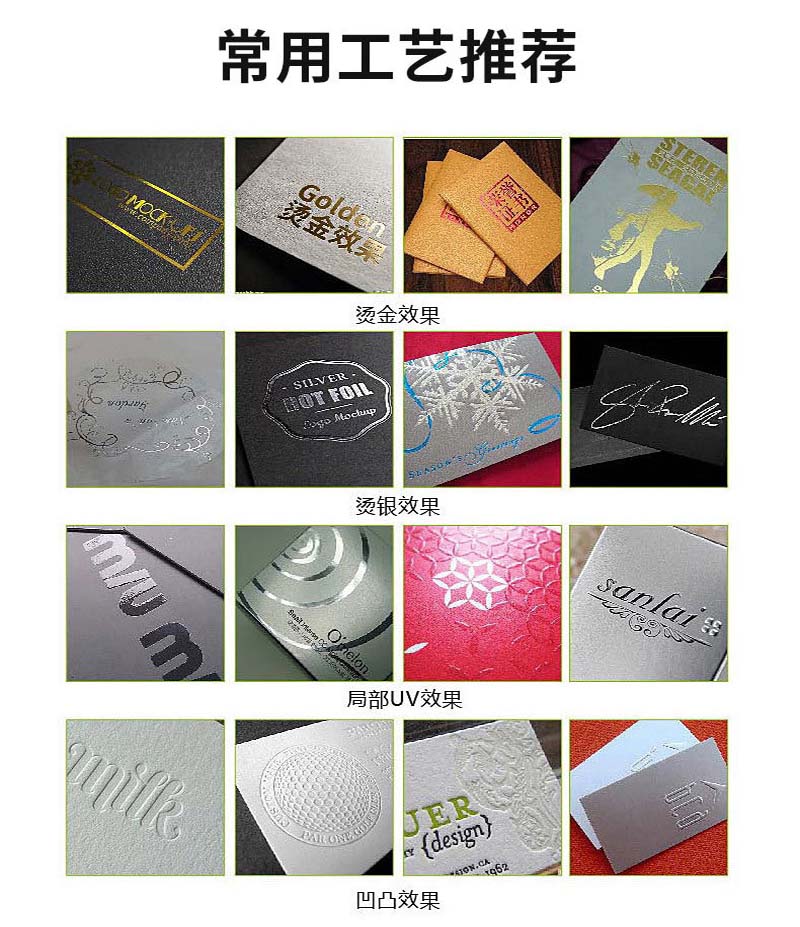 常用工藝:覆膜(啞膜、光膜)、壓紋、凹凸印、局部uv、燙銀、燙金、印專色(PANTONE色)、鏤空、鐳射、打孔、疊印、絲網(wǎng)印、透印、過(guò)光油、啞油等